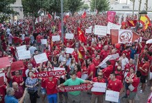 Seguidores del Real Murcia protestan contra el descenso del equipo a Segunda B. | Archivo