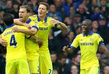 Ivanovic (2i) celebra con Fábregas, Matip y Ramires su gol al Everton. | Cordon Press