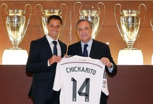 Chicharito Hernández posa con Florentino Pérez. | Real Madrid