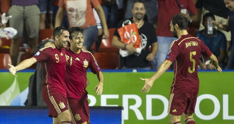 España, 5: Casillas; Juanfran, Albiol, Sergio Ramos (Bartra, m.68), Jordi Alba; Busquets, Koke (Munir, m.78); Silva, Cesc, Pedro; y Paco Alcácer (Isco, m.57)