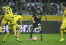 Hrgota, del Borussia Monchengladbach, rodeado de tres jugadores del Villarreal. | EFE