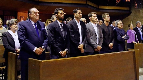 También estuvo presente el segundo entrenador del Real Madrid, Fernando Hierro y algunos de los que fueron sus compañeros en su etapa de futbolista. Francisco Gento, Enríque Pérez Pachín e Ignacio Zoco acudieron a la misa en recuerdo del futbolista argentino.