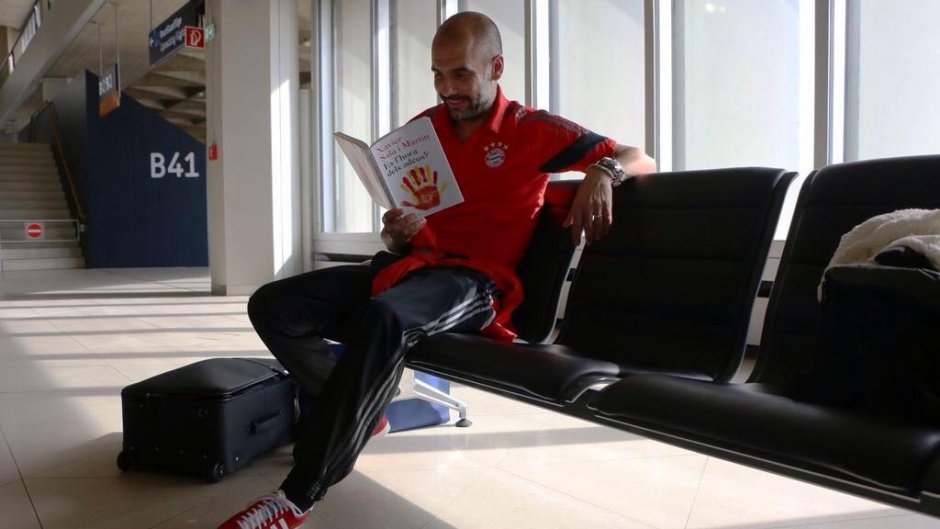 La cuenta oficial de Twitter del conjunto alemán publicó una instantánea del entrenador leyendo en la sala de espera del aeropuerto de Múnich antes de partir hacia Moscú. En la imagen se puede apreciar que está leyendo ¿Es la hora del adiós?, escrito por Xavier Sala i Martín, economista que fue vicepresidente del Barcelona con Joan Laporta.