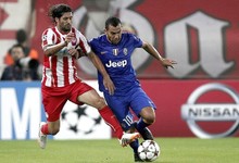 Chori Domínguez (i) disputa un balón con Tévez durante el Olympiacos-Juventus. | EFE