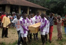Ante la escasez de ropa, una comunidad ha decidido utilizar las camisetas del Real Valladolid, conseguidas por un misionero, para los entierros.