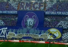 Espectacular tifo en una de las gradas del Santiago Bernabéu durante el clásico ante el Barcelona.
