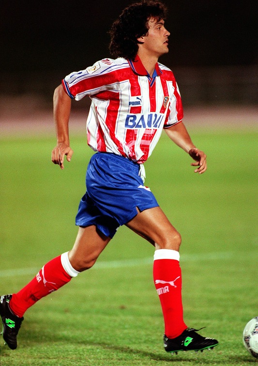 El actual técnico del Atlético de Madrid vistió la camiseta rojiblanca y el cartel de jugador brusco, aunque alguna vez se sobrepasó. Un brutal pisotón sobre Julen Guerrero en un partido contra el Athletic de Bilbao, le valió numerosas críticas. San Mamés no olvida cómo sangraba la herida de su jugador.