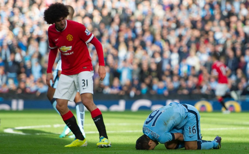 La tensión presidió el derbi de Manchester que el City y el United disputaron este domingo en el Etihad Stadium, con victoria para el equipo de Manuel Pellegrini merced a un tanto de Sergio Agüero. Durante un lance del partido, el visitante Marouane Fellaini escupió al Kun, que estaba tendido en el suelo.
