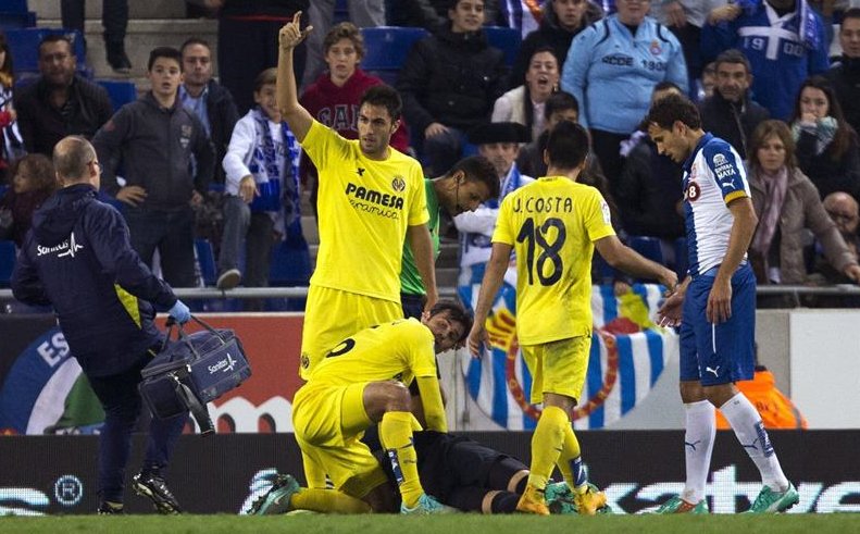 Sergio Asenjo, portero del Villarreal, tuvo que ser ingresado este domingo en el Hospital Universitario de Bellvitge, en Barcelona, tras el golpe que sufrió en el cuello en una caída durante el partido contra el Espanyol en Cornellá. La acción se produjo a diez minutos del final del partido tras saltar a por un balón dividido que atrapó con las manos, pero fue desequilibrado por dos jugadores y, tras dar una voltereta, cayó de cabeza y se torció el cuello.