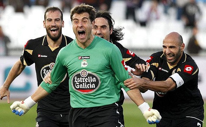 En la temporada 2010/11, el portero del Dépor le echó una mano a sus compañeros anotando el empate a uno ante el Almería en el 94.