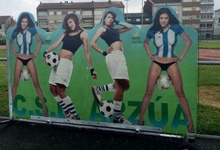 comentarios La barrera representaba a cuatro mujeres en actitud sugerente, incluso erótica, y con poca ropa.