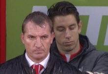 Brad jones, suplente de Mignolet en el conjunto inglés, fue cazado dando una cabezada detrás del entrenador del equipo.