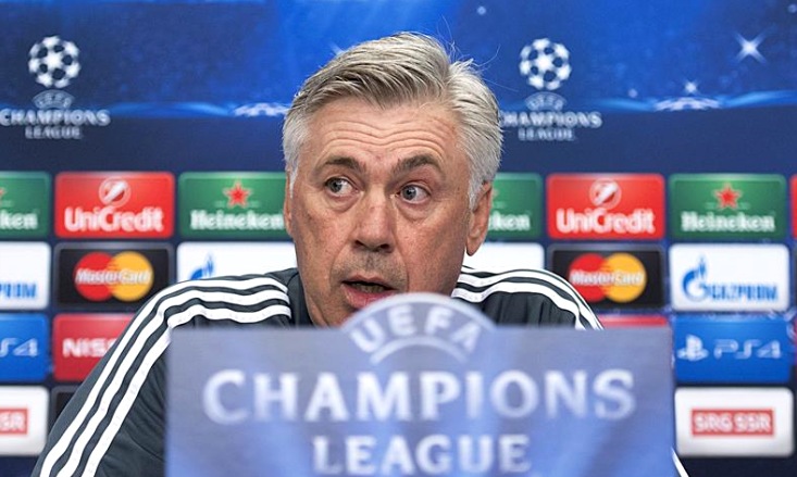 Ancelotti compareció en la sala de prensa del Saint Jakob Park, donde aseguró que este miércoles alineará el mismo ataque que en Ipurúa frente al Eibar, para intentar certificar el primer puesto del grupo de forma matemática.