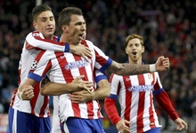 Mandzukic celebra uno de sus tres goles a Olympiacos en el Calderón. | EFE