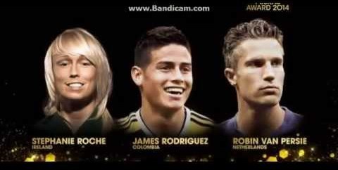 El jugador del Real Madrid, James Rodriguez es uno de los tres finalistas al "mejor gol del año", el premio Puskas. El centrocampista está nominado por su volea en el pasado mundial de Brasil. Compite con el cabezazo en plancha de Van Persie contra España y la sensacional jugada de la irlandesa Stephanie Roche.