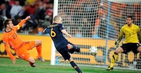 Minuto 116 de la final del Mundial de Sudáfrica. España y Holanda empatan a cero. Hasta que Navas arranca una jugada por la derecha. Le cae a Iniesta el balón rechazado y se la da de tacón a Cesc, que busca a Torres. Pero le cortan el pase y la recoge Navas, que ahora sí, se la da a Torres, en la izquierda. Centra el exrojiblanco buscando a Iniesta, pero le tapan el pase, y el balón muerto le cae a Cesc, que sí se le da al manchego. El resto ya es historia del fútbol español.