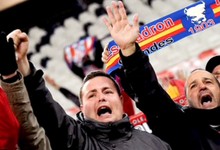Varios miembros del Frente Atlético realizan el saludo fascista en Turín. | Archivo