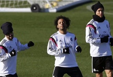 Cristiano Ronaldo (d), con Isco (i) y Marcelo en el entrenamiento en Valdebebas. | EFE