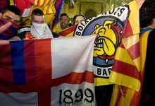 Miembros de los Boixos Nois muestran sus banderas. | Cordon Press