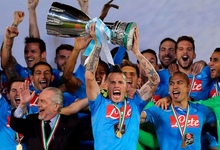 Los jugadores del Nápoles celebran el título de la Supercopa de Italia.