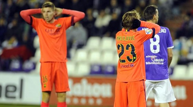 El Real Valladolid ha despedido el año goleando al Barcelona B por 7-0 con goles de Óscar, Mojica, Bergdich y Jeffren y uno en propia puerta de Macky que acaban con la sequía goleadora que ha acusado el equipo vallisoletano en los últimos partidos.