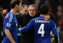Mourinho arropa a Cesc tras la victoria frente al West Ham. EFE