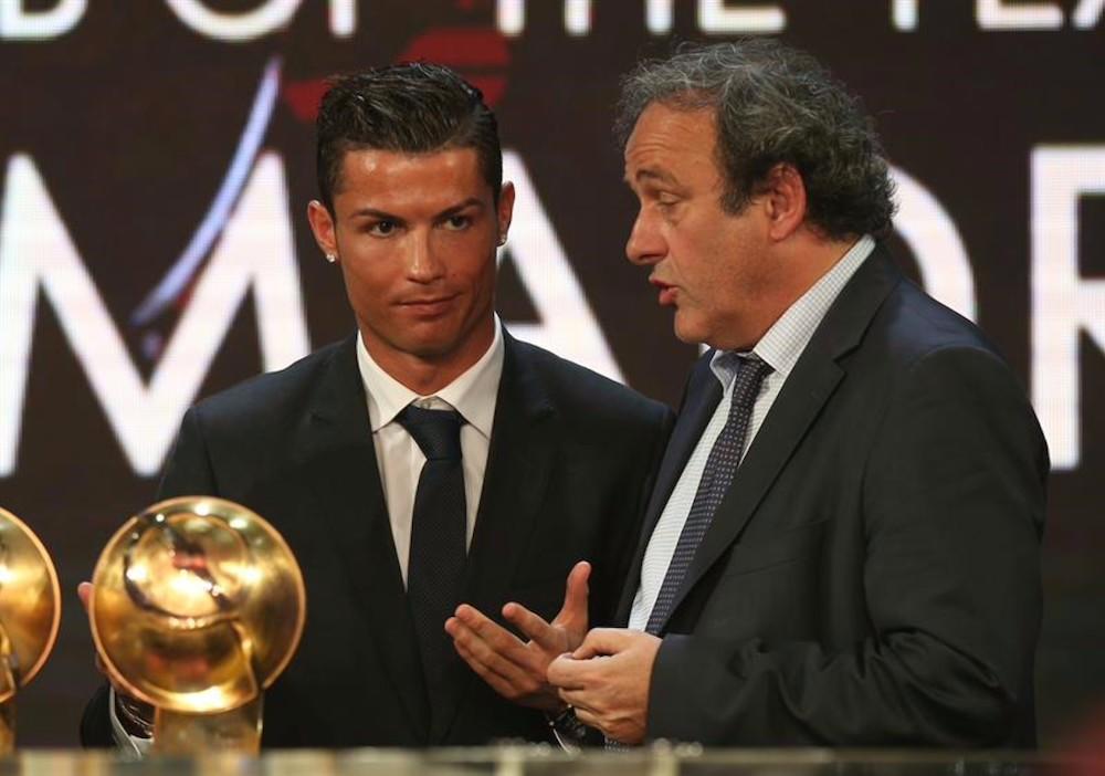El delantero del Real Madrid coincidió en la ceremonia con Platini y, con la mano tapando su boca, le dijo algo al presidente de la UEFA que respondió de forma breve al luso. Se desconoce qué se dijeron ambos.