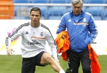 Ancelotti observa el estiramiento de Cristiano Ronaldo. | Archivo