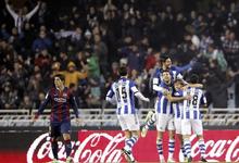 La Real Sociedad celebra el gol delante de Luis Suárez. | EFE