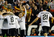 El Valencia celebra el segundo gol de Otamendi. | EFE