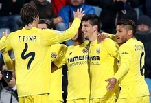 Gerard Moreno (2d) es felicitado por su gol en el Coliseum. | EFE