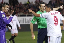 Héctor Moreno (i) discute con Bacca ante el colegiado Martínez Munuera. | EFE
