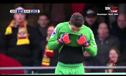 La 'cantada' del año se ha dado este fin de semana entre el Go Ahead Eagles y el Ajax. A falta de tres minutos para el final, el portero era Mickey van der Hart, cedido por el Ajax, se la 'come'.