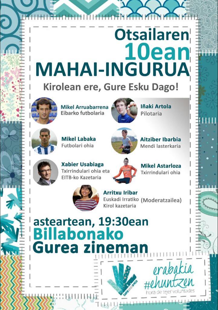 Mikel Arruabarrena, segundo capitán del Eibar, será uno de los participantes de una charla que organiza la plataforma Gure Esku Dago (Está en nuestra mano), un órgano similar a la Asamblea Nacional Catalana, en el que varios deportistas hablarán acerca la independencia del País Vasco y el derecho a decidir.