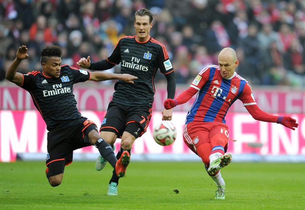 El Bayern cocinó a su rival a fuego lento y de repente el Hamburgo, antes de que terminará la primera parte, se vio perdiendo por 3-0. Los bávaros habían tenido la pelota pero no habían llegado mucho a puerta cuando, en el minuto 21, un centro de Rafinha fue interceptado con la mano dentro del área por un defensa del Hamburgo.