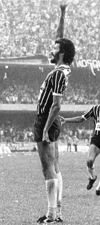 Siempre con sus mensajes, como el día que apareció en la final del Torneo Paulista de 1983 ante un Pacaembú a rebosar, con el brazo alzado, el puño cerrado, y una camiseta con un claro mensaje: "ganar o perder, pero siempre con democracia".