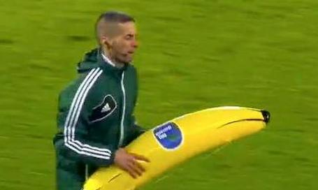 Parte de la grada acudió al encuentro con plátanos hinchables que mostró contra el jugador africano. Uno de ellos cayó en la primera parte, ocho minutos antes del descanso. El árbitro, el francés Clément Turpin, decidió suspender momentáneamente el choque.