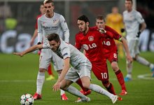 Saúl y Griezmann en el partido de Champions ante el Leverkusen. | Archivo