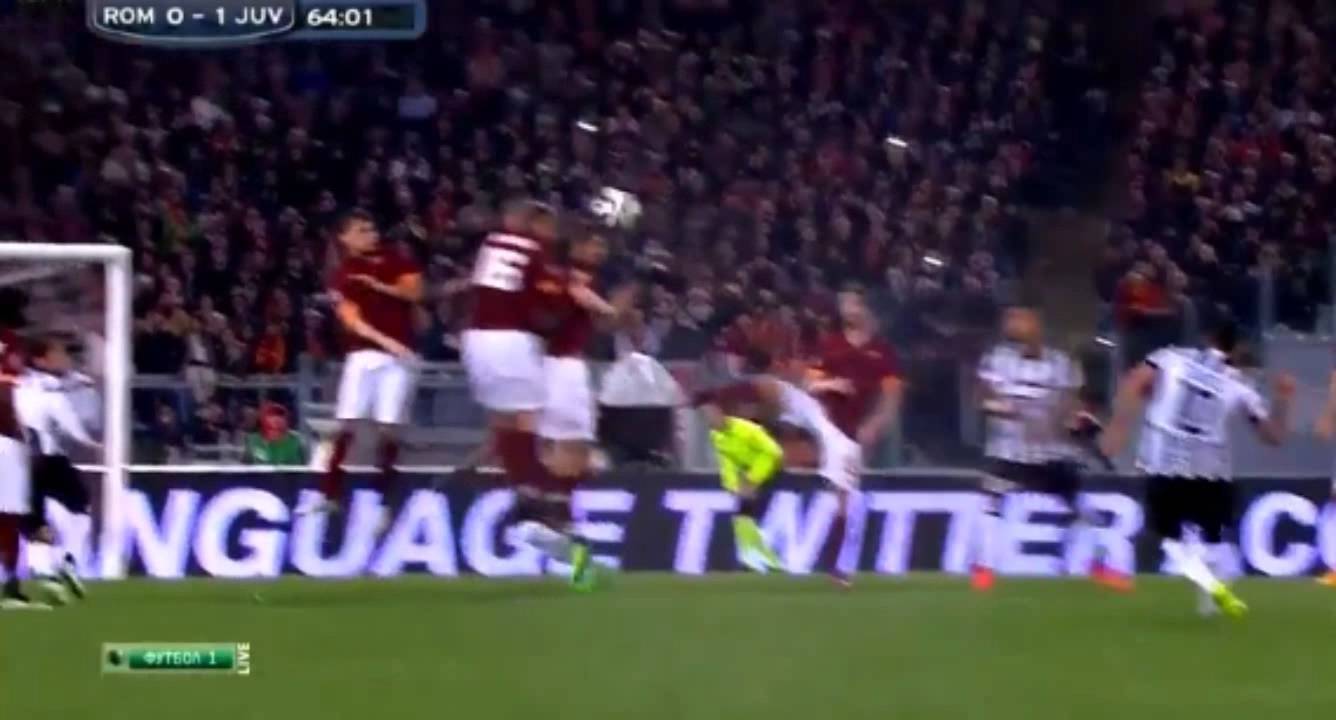 A los 64 minutos del duelo Roma-Juventus de la Liga italian, Carlos Tévez sorprendió al portero Morgan De Sanctis con un golazo de falta que se coló junto al palo.