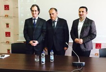 Javier Tebas, en el centro, en el Congreso de la AEPD. | @periodistasAEPD