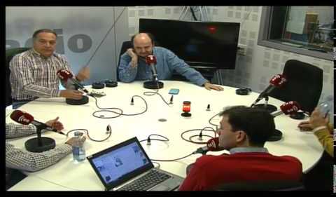 Dieter y Juan Pablo comentan con Isidoro, Amancio y Juanma la final de Copa entre Barça y Athletic presumiblemente en el Bernabéu.