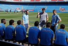 El delantero charló con varios de sus excompañeros y saludó a los miembros del cuerpo técnico, incluido Simeone.