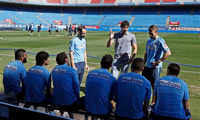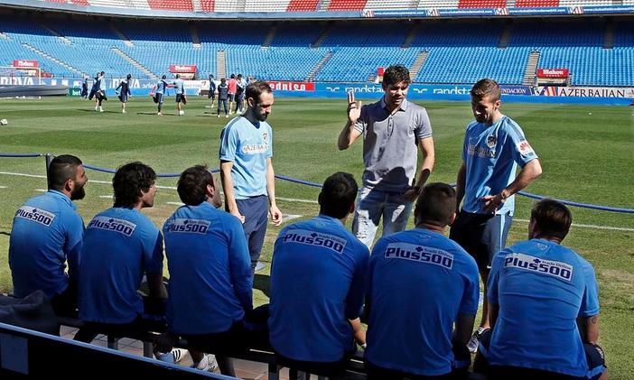 El futbolista internacional con España charló con varios de los jugadores de la actual plantilla y saludó a los componentes del cuerpo técnico, incluido el técnico Diego Pablo Simeone.