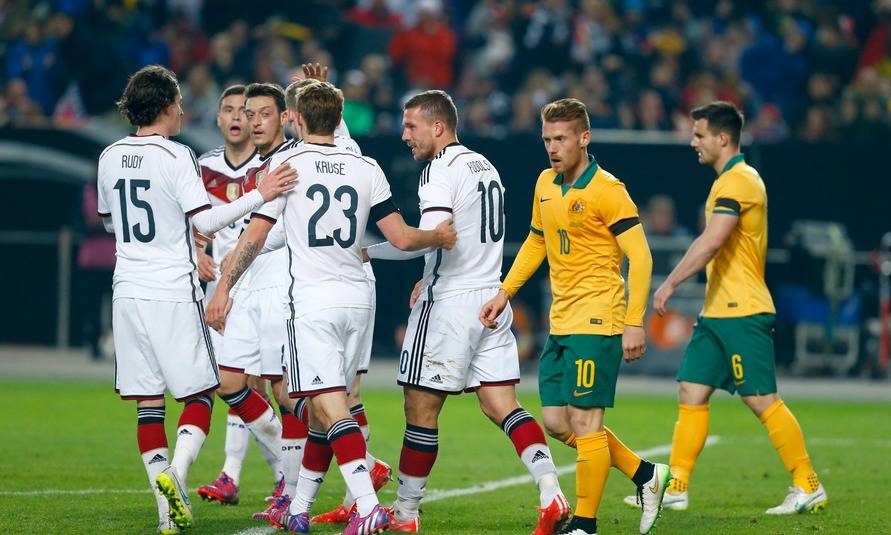 La Mannschaft a mostró desde el comienzo combinaciones interesantes cuando atacaba, predominantemente por la banda izquierda donde Marco Reus y Mario Götze se asociaban con frecuencia, pero a la vez tuvo algunos problemas defensivos en medio de un sistema con una defensa de tres hombres en fase experimental. Ante todo, la banda derecha mostraba debilidades y Leckie llegó en dos ocasiones por esa zona con bastante peligro.