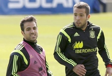 Jordi Alba junto a Cesc en un entrenamiento con España. | Archivo
