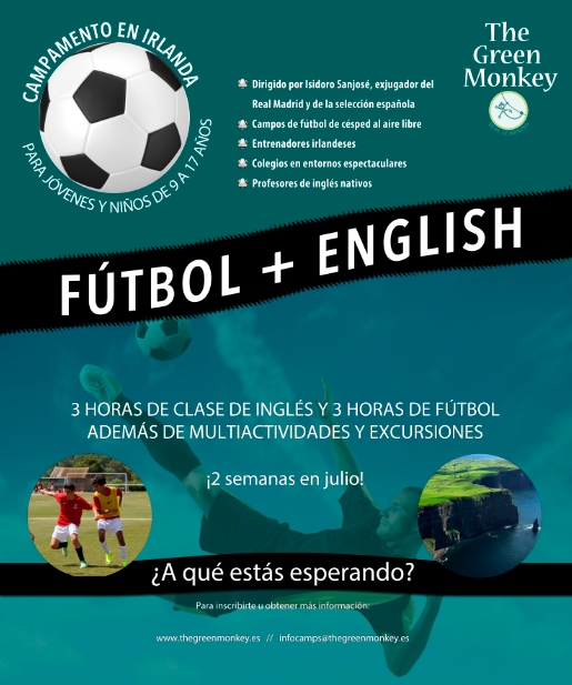 La empresa The Green Monkey, especializada en cursos de idiomas y campamentos de verano en el extranjero, pone en marcha este año el campamento de fútbol con inglés en Irlanda, organizada por el exfutbolista del Real Madrid y colaborador del Grupo Libertad Digital, Isidoro San José.