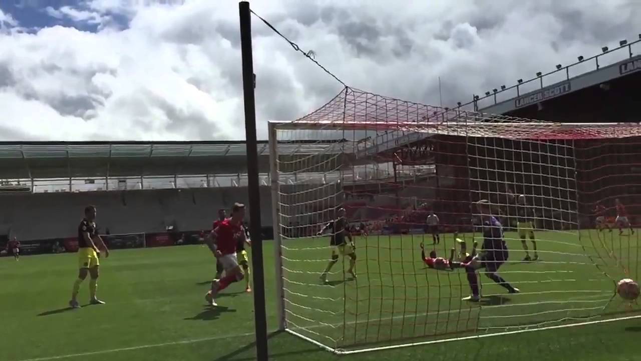 Aden Flint, del Bristol, deleitó a su afición con este espectacular recurso en pleno salto para batir al guardameta del Walsall.