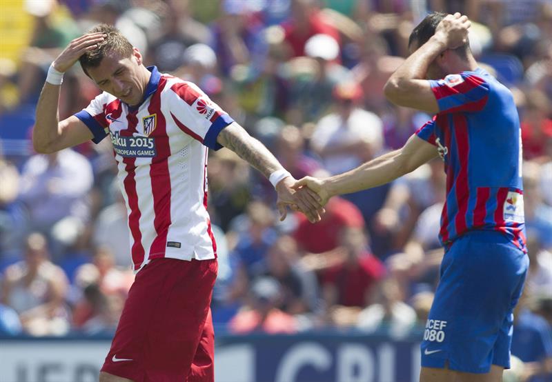 Pese a la precauciones defensivas locales, el Atlético pudo abrir el marcador en el minuto 9 en una doble ocasión ante la que respondió brillantemente Mariño. Un centro de Siqueira fue rematado por Mandzukic en plancha a los pies del portero local y el rechace le cayó a Arda, que tampoco pudo superar al meta levantinista.