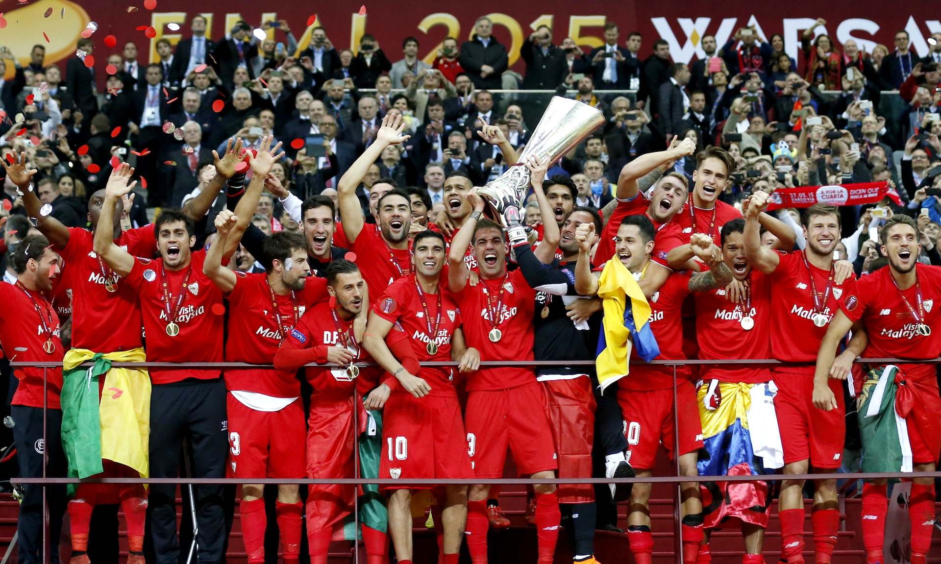El Sevilla se ha proclamado campeón de la Europa League por cuarta vez en su historia -segunda de manera consecutiva- tras derrotar al Dnipro ucraniano en la final, disputada en el Estadio Nacional de Varsovia (2-3).