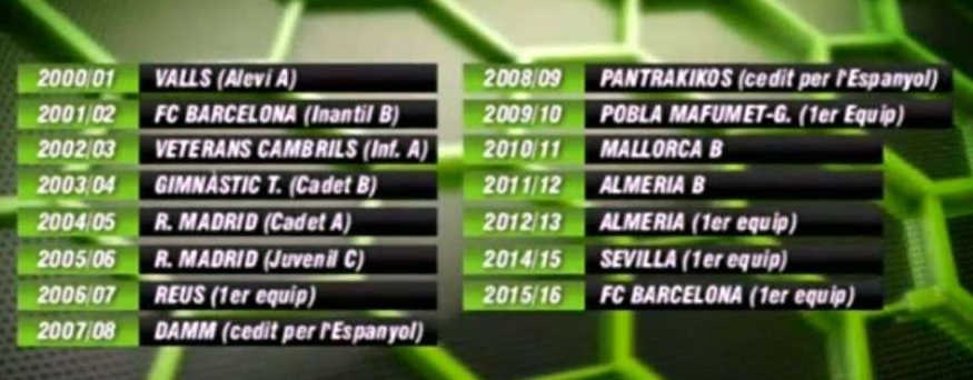 "He pasado por muchos equipos antes de llegar aquí. Espero que el Barça sea el último", dijo Aleix Vidal en su presentación. En total, el futbolista de Tarragona ha pasado por trece equipos antes de recalar en el primer equipo del Barça, como desvelaba la infografía, y uno de ellos fue el Real Madrid.